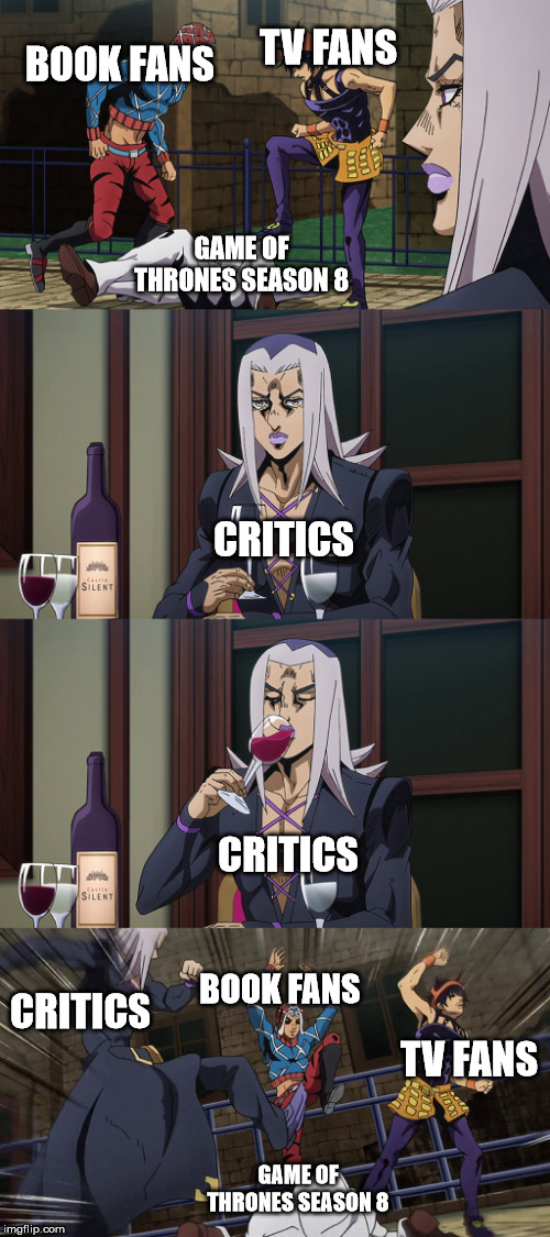 Pour enfin tourner la page (?) avec la série, Lindsay Ellis – déjà mentionnée au sein des « chaînes YT préférées » de @werther et en course pour un Hugo en ce moment même pour son travail sur la trilogie du Hobbit – est revenue en 2 vidéos dessus, sur sa conclusion, en particulier, sa signification ; et son impact sur l’héritage de GoT. Because « sometimes you’ve got some feelings… and you just, you gotta monetize ’em. »