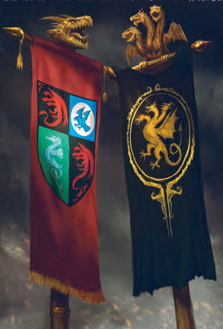- Bannières de Rhaenyra et d’Aegon II Targaryen, Danse des Dragons (Nutchapol Thitinunthakorn, © L’ère du Dragon)