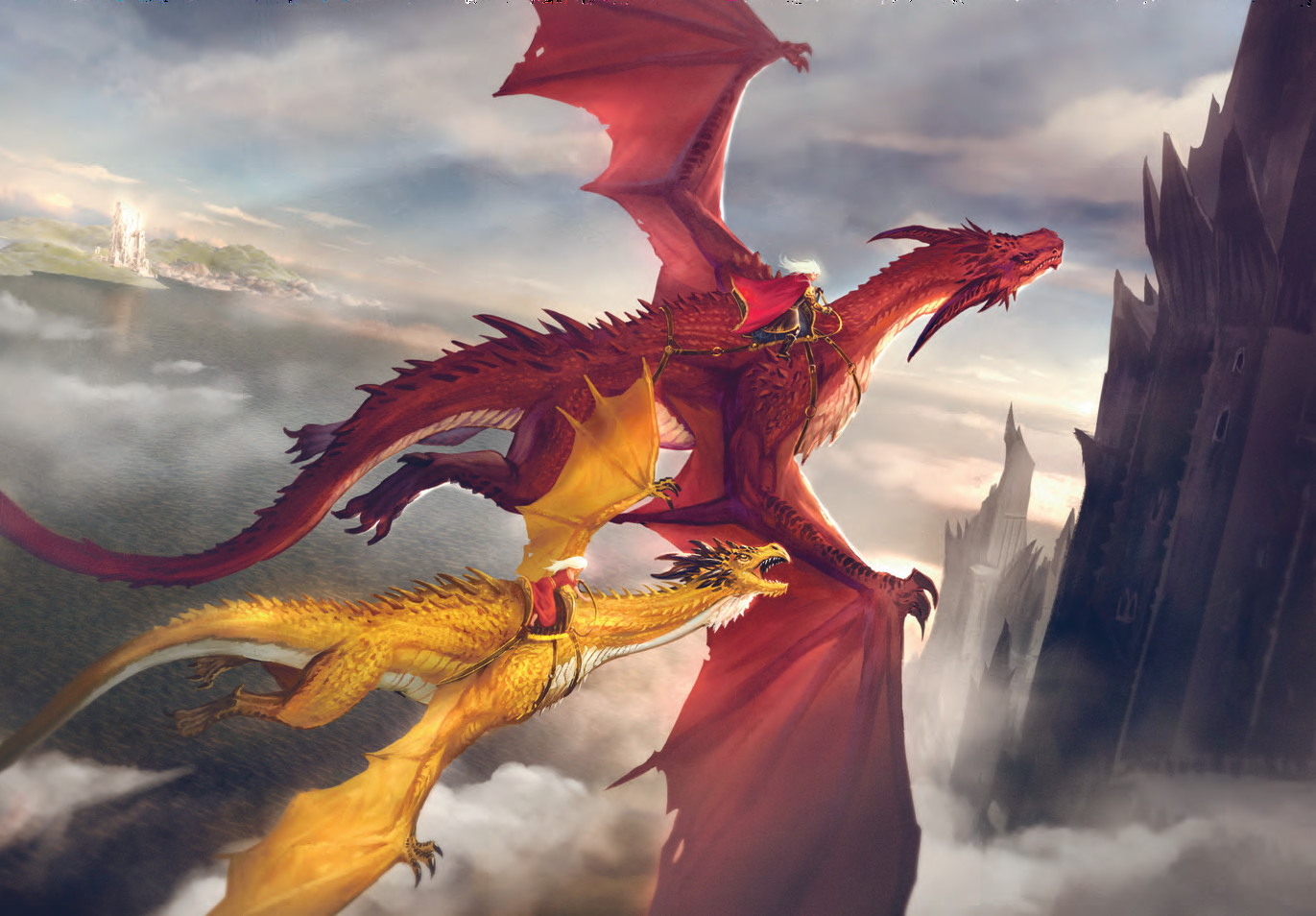 - Rhaenyra et Daemon Targaryen sur leur dragon, Syrax et Caraxes (Nutchapol Thitinunthakorn, © L’ère du Dragon)